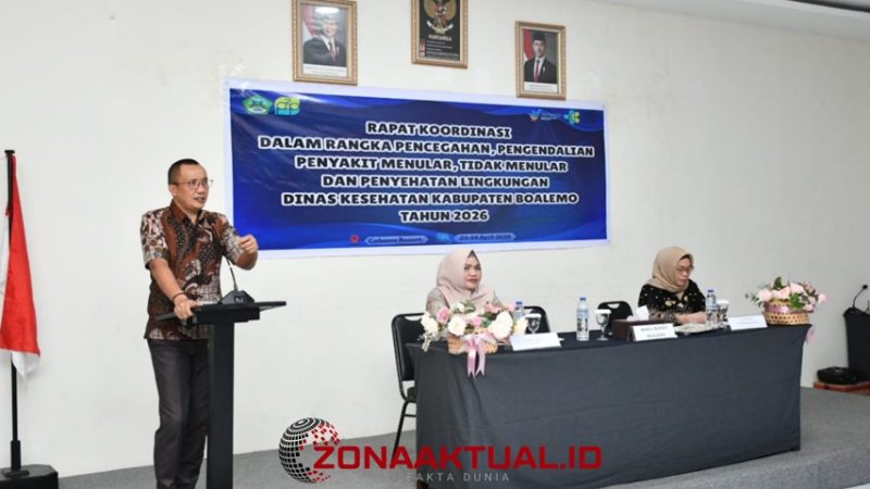 Zonaaktual.id, Boalemo — Wakil Bupati Boalemo, Lahmuddin Hambali, secara resmi menutup Rapat Koordinasi (Rakor) Pencegahan dan Pengendalian Penyakit serta Penyehatan Lingkungan yang diselenggarakan oleh Dinas Kesehatan Kabupaten Boalemo.